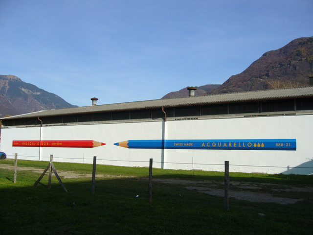 Nel murale lungo 44 metri sul muro della caserma dei pompieri di Bellinzona si incontrano due elementi: il fuoco e l'acqua. Nei colori cantonali simboleggiano anche le due parti del cantone e indicano con un occhiolino la funzione dell'edificio. "Rosso fuoco" è capovolto e sembra arrendersi, "Acquarello" porta via la vittoria, per questa volta.